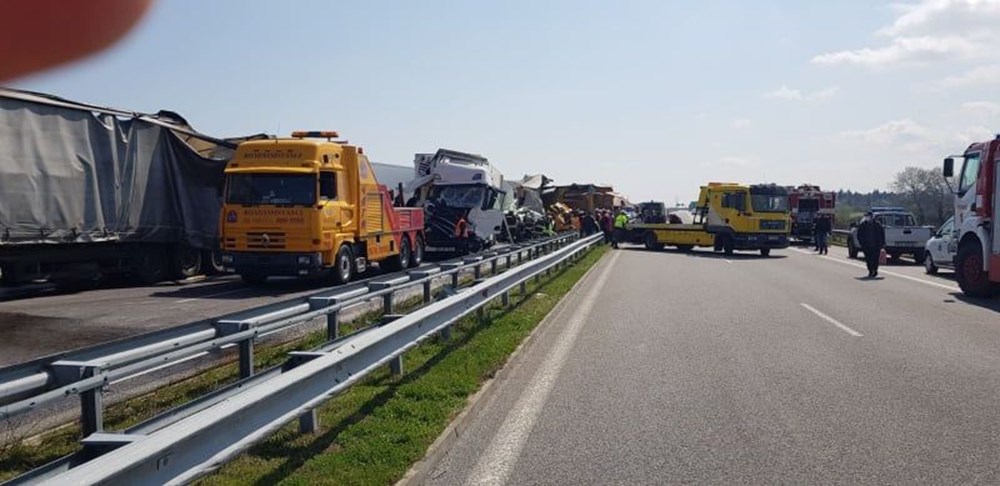 Zincirleme kazada biri Türk, diğeri Bulgaristan vatandaşı TIR sürücüsü olmak üzere 2 kişi hayatını kaybetti.